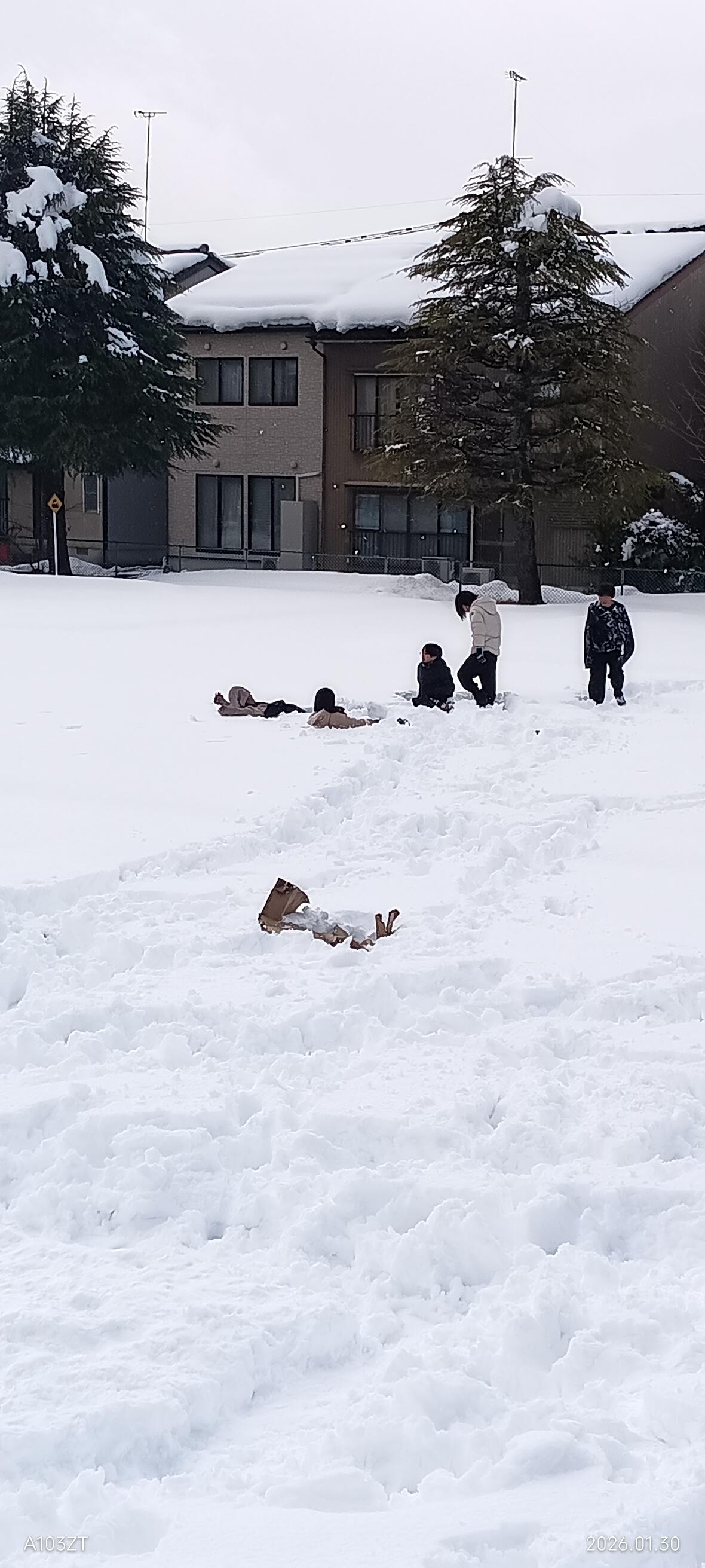 富山県高岡市はとても深い雪です。 しかしその中でも子どもたちは元気に遊んでいます。 普段遊んでいる公園もこの日は違う遊び場ですね。