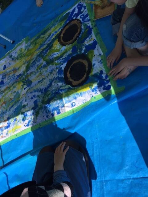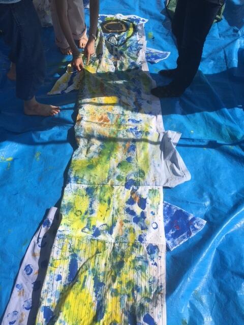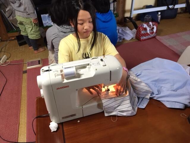 ワイシャツを切って縫い合わせ、色を塗ってます