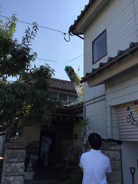屋根よりは低いけどこいのぼり。